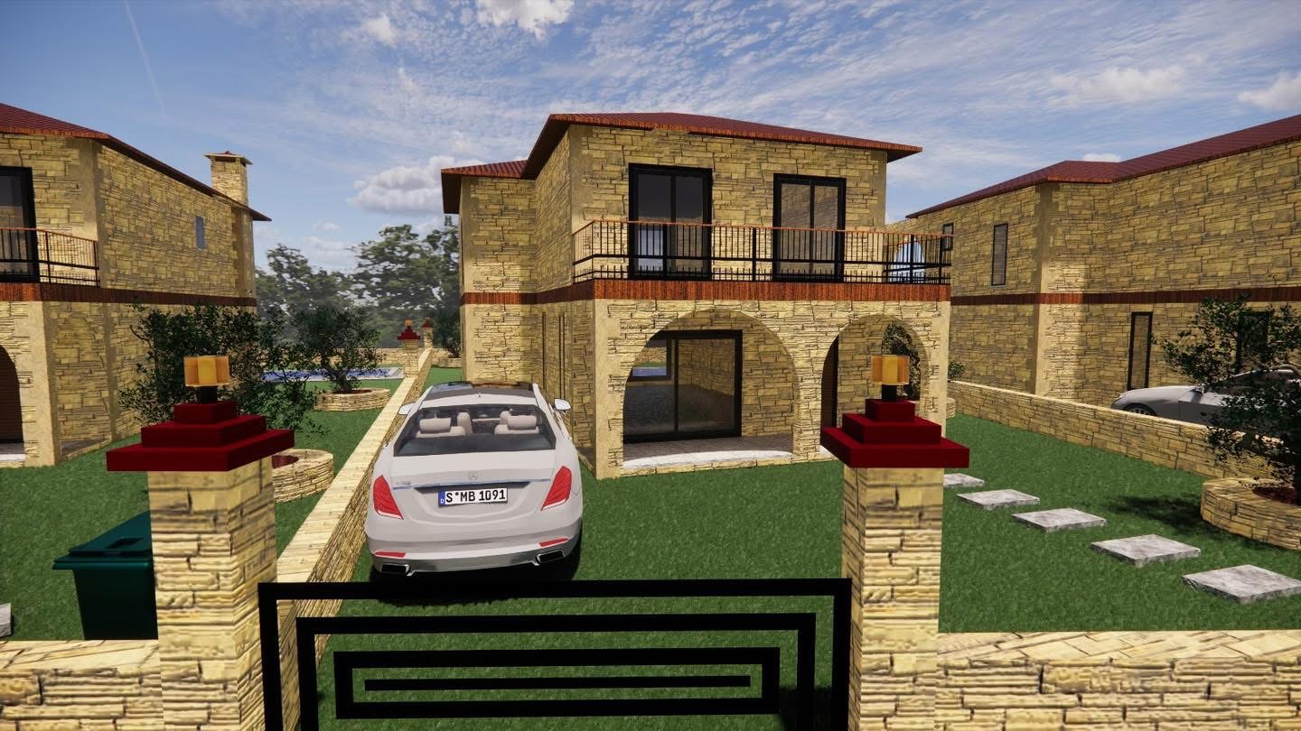 Bu 4 adet %100 doğal Taş evimiz 3 odalı, 3 banyolu Taş ev, 2 dönüme yakın arazi üzerine inşa edilmiş. Her villa 500 m2 bölünmüştür ve Denize sadece 5 dakika uzaklıktadır. Tüm Otellere 10 dakika Girneye 20 dakikadır.